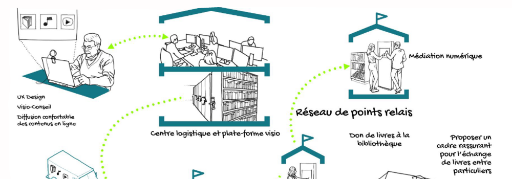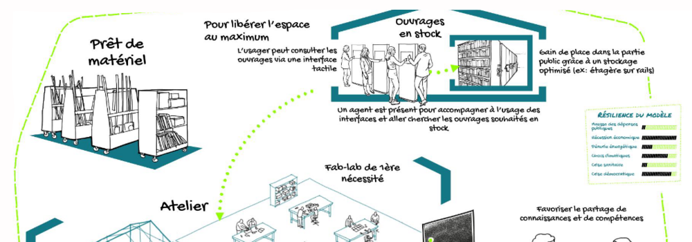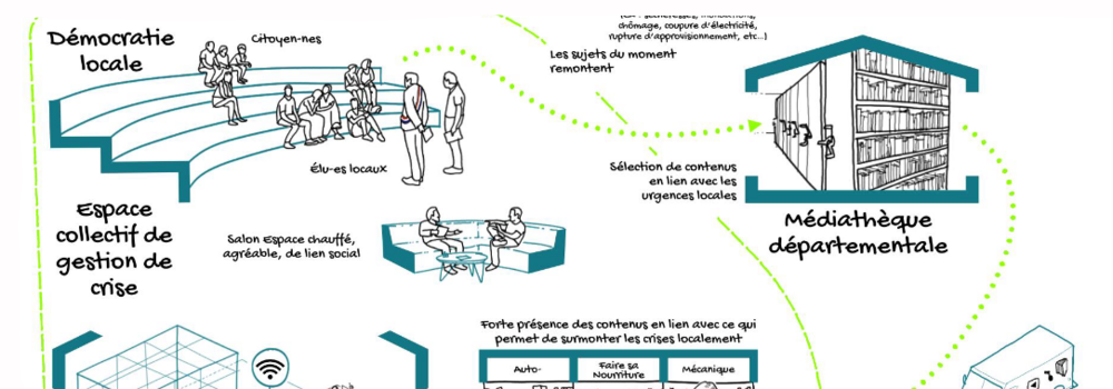 Cette journée d’étude est consacrée à la mise en avant des innovations et des projets participatifs qui prennent place dans les bibliothèques bretonnes ainsi qu’à la mise en lumière des liens qu’elles tissent avec différents partenaires. Dans ce cadre Détéa a été missionné pour préparer et animer la conférence de lancement. Ce fut l’occasion d’analyser la résilience de 3 médiathèques 1/3 lieu existantes lors de la crise sanitaire du Covid (adaptation, tendances observées et ce qu’il en reste) et d’élaborer des visions prospectives permettant d’explorer les missions et rôles possibles des médiathèques à l’heure des crises multiples (énergétiques, climatiques, démocratiques).